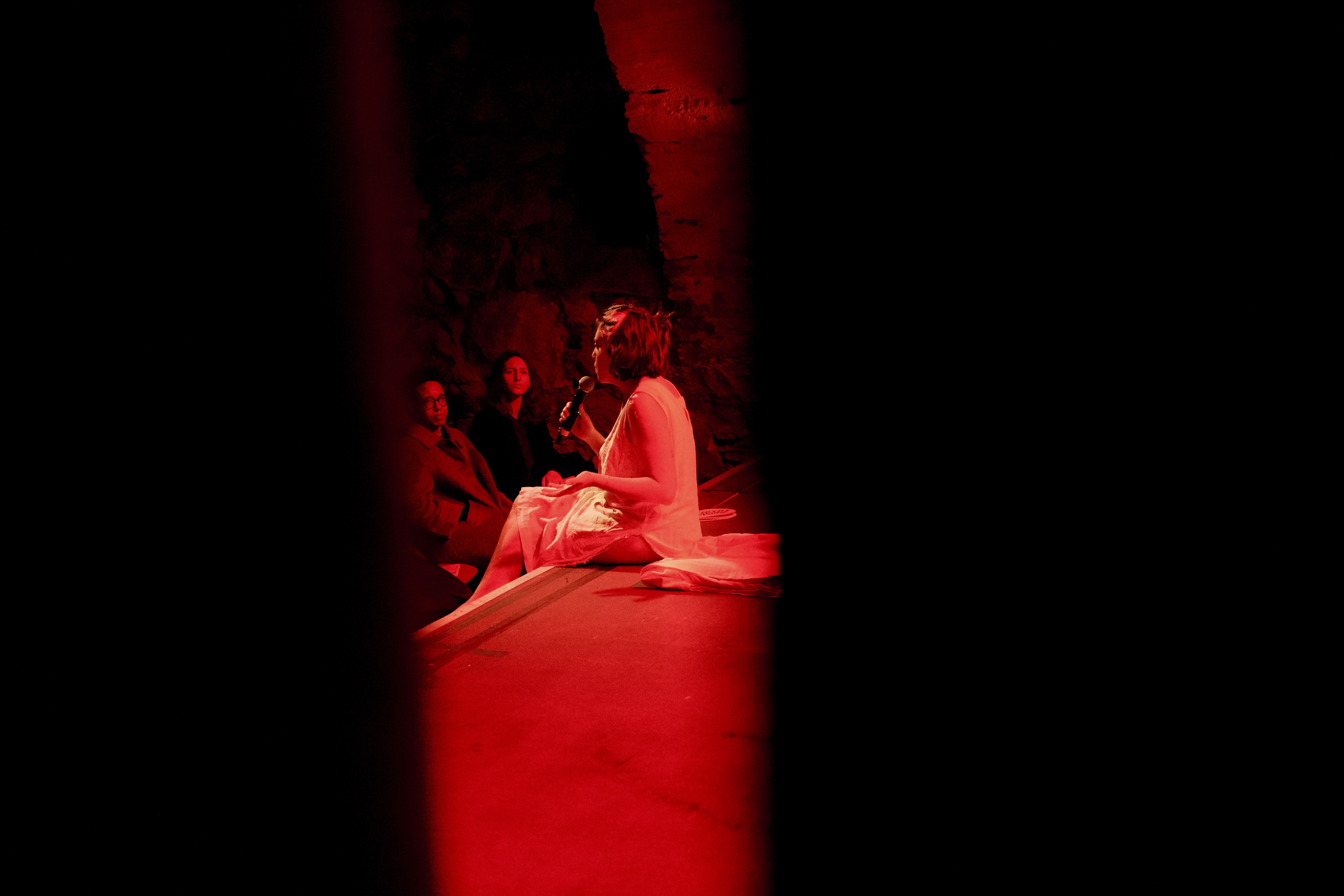 From an invitation to the presentation of the book “Feminist Exposure”, the performance piece brings on stage a double agent who confronts the audience playing with strawberries and gestures of intimacy on the stage.