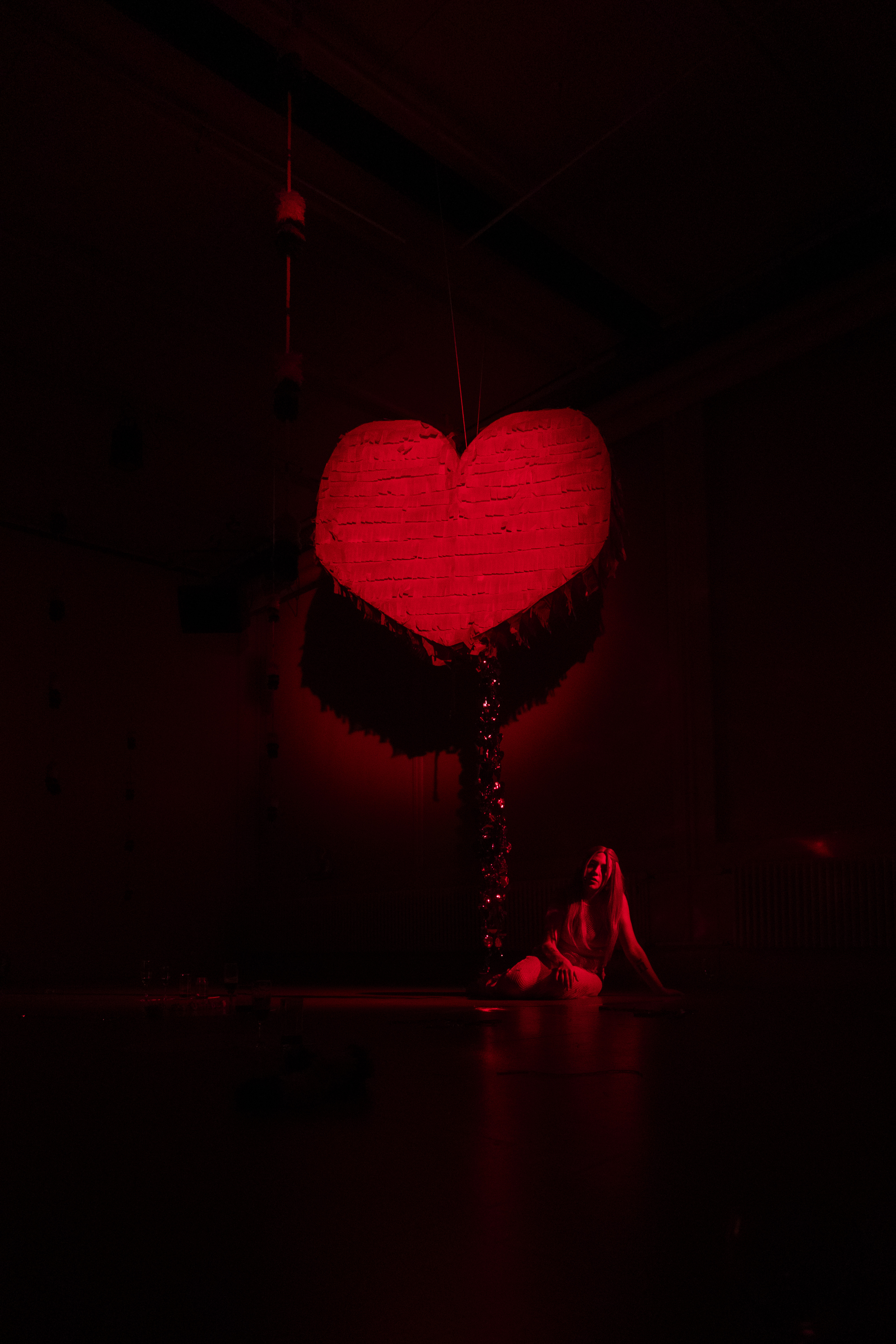 Through poems, pop music and blood red, the performance consists of a monologue that invites to repair the broken hearts of the attendees to the party, who are the broken-hearted?