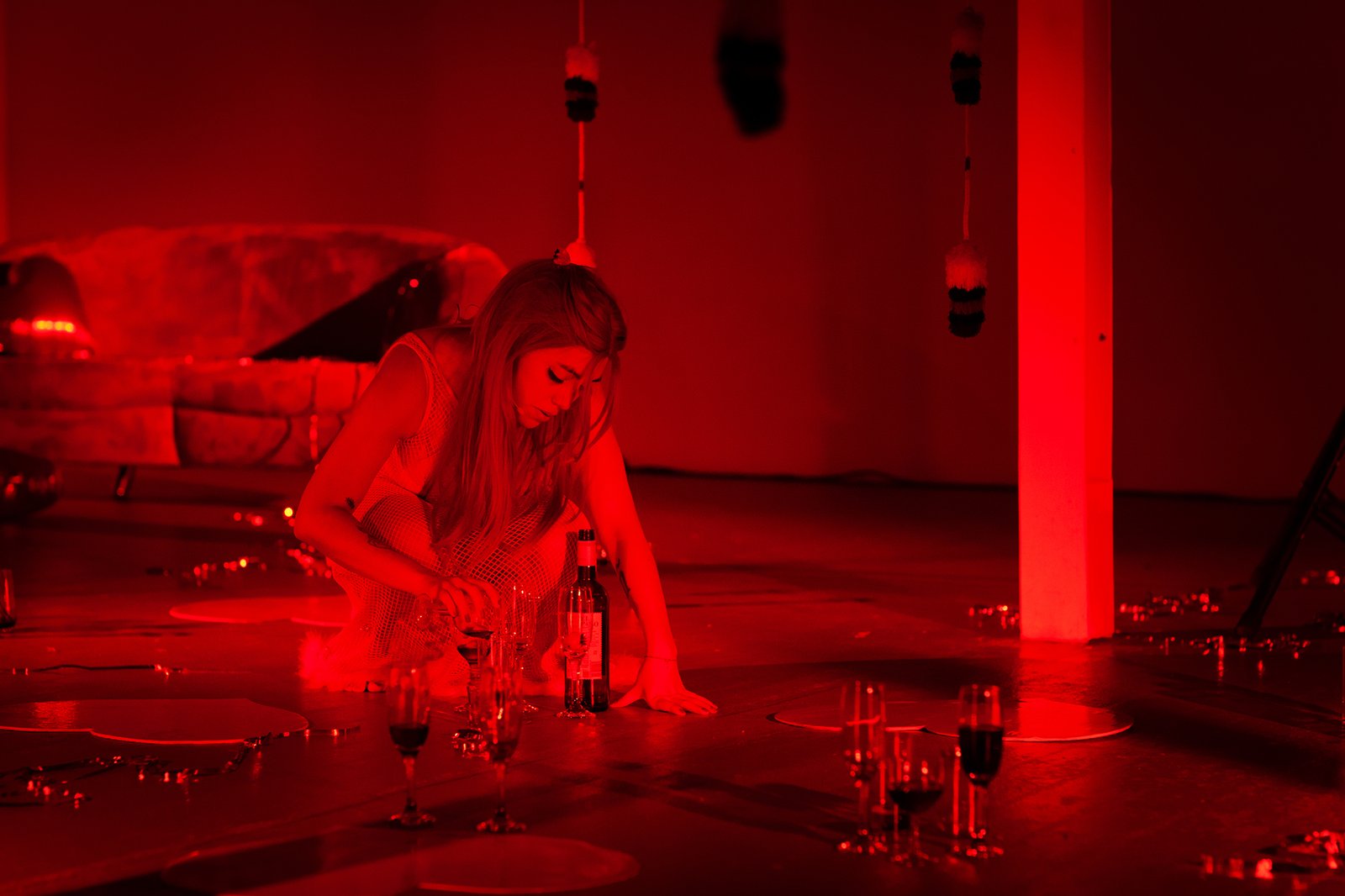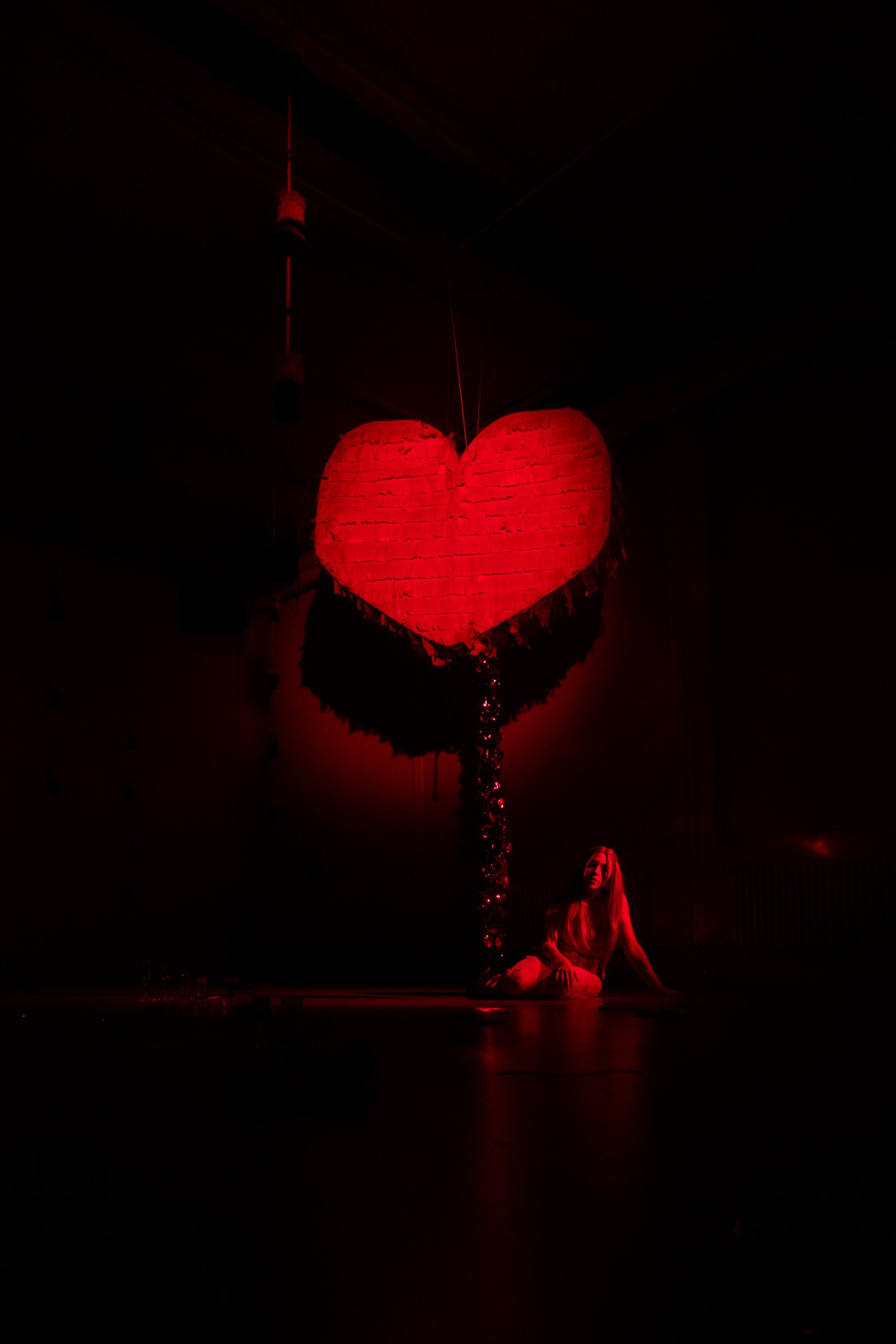 Through poems, pop music and blood red, the performance consists of a monologue that invites to repair the broken hearts of the attendees to the party, who are the broken-hearted?
